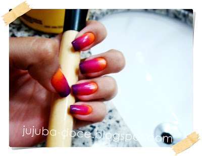 8° Ao lado do esmalte rosa aplique o esmalte roxo